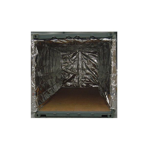 The Envirotuff Thermal Liner is a fully woven reflective liner that is hung into a general-purpose ISO shipping container and allows for forklift loading, hand loading and slip sheet. Once loaded it is fully sealed protecting the walls and providing a closed off temperature and humidity controlled environment for the goods within. Perfectly suited for wine, candy, beverage, foodstuff, costemtics, plastics, chemical and other goods as during transport it creates a stable environment that significantly reduces the rate at which temperature fluctuates thus not allowing the dew point to be reached. Also available in pallet cover form. This product does not include the floor and is suited for 40' containers