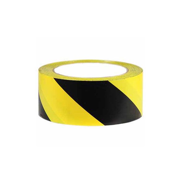 Black and Yellow hazard marking tape. Sticks to clean, smooth, sealed surfaces. It is ideal for marking out warehouse isles and boundaries, restricted zones, safety locations, hazardous areas and indoor sports halls.
