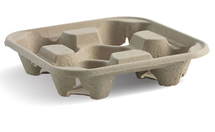 This 4 cup carry tray is made from 100% recycled paper pulp. The carrier is suitable for clear and paper cups from 6oz to 22oz. Home compostable and recyclable.