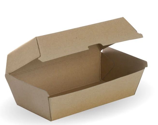 BioPak paperboard regular snack boxes are made from recycled paper and unlined. These paper clamshell containers are home compostable. Eco-friendly and perfect for takeaways. These unlined takeaway food paper containers are suitable for composting and recyclable in kerb-side recycling if not too soiled with food. For hot and cold use. Measures 175x90x84.
