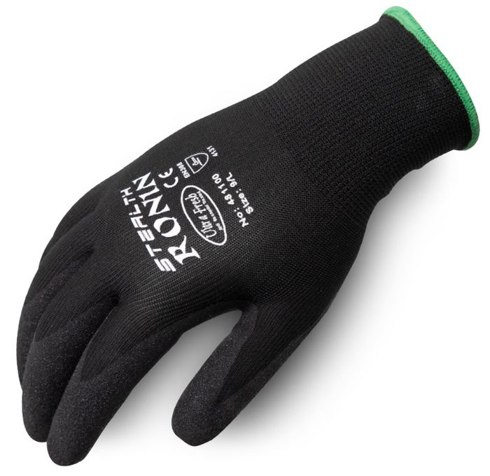 Ronin Gloves are a flexible and durable work glove, has a knitted cuff for a secure fit. A nitrile foam coat provides excellent grip. Can be used in the automotive industry, engineering, maintenance and general purposes. Size 11 is XXL. Sold per pair, 12 pairs per pack.
