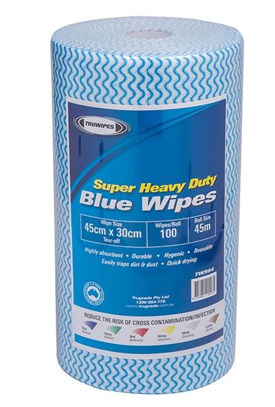 A heavy duty wipe that is a Chux equivalent. This roll is perforated. 45m per roll, 30cm x 45m. 6 rolls per carton.