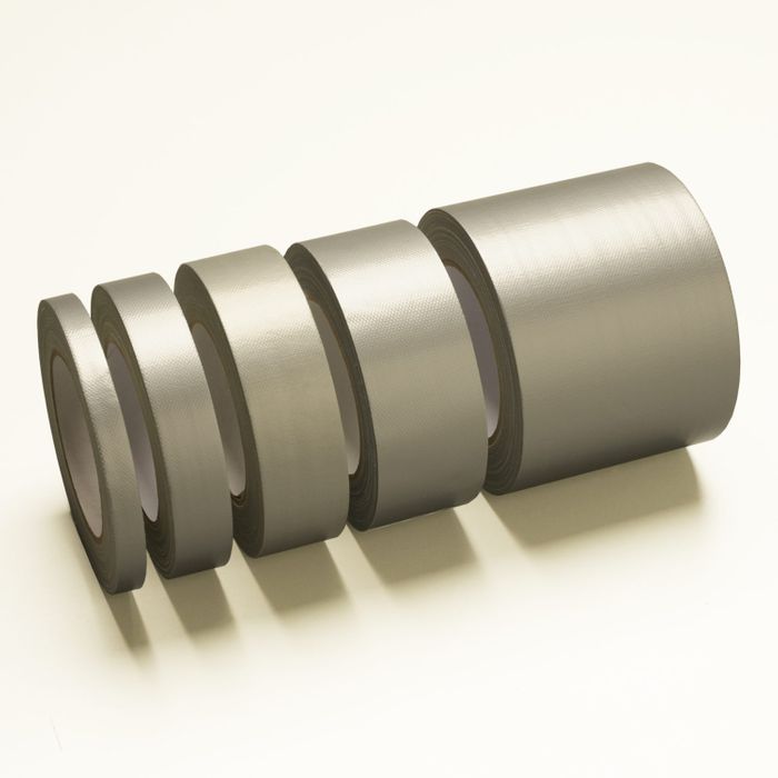 A high quality polythene coated polyster/cotton tape with natural rubber adhesive. Suited to heavy packaging and industrial applications. A polythene laminated cloth backing. Tape has good tack and strength. Silver in colour.