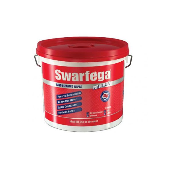 Swarfega Red Box comes in 150 Wipes per tub and is a universal wipe for general hand cleaning, such as removing oil, grease and grime. The impregnated tough, extra large wipes are available in a handy, easy-to-use pack which can be used whilst on the move, with no need for water.