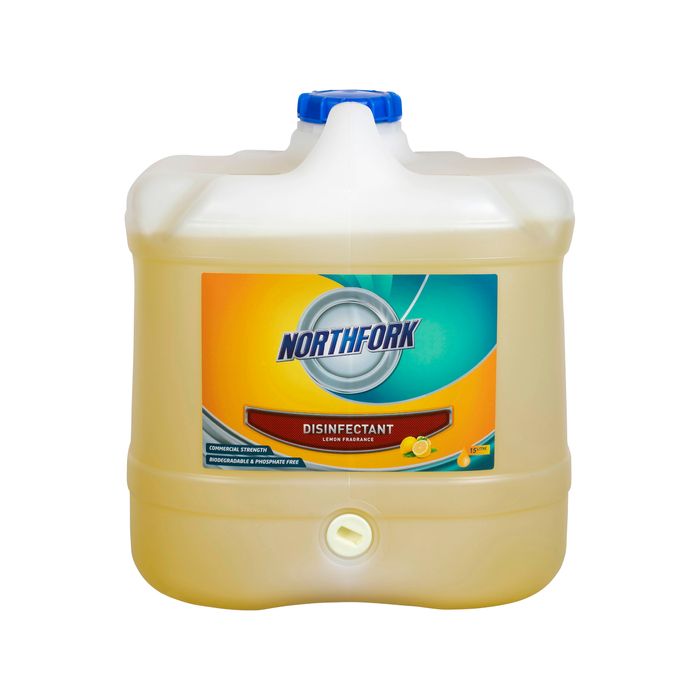 The Northfork Lemon Disinfectant comes in a 15L bottle. Ideal for cleaning areas such as vinyl and tiled floors. Eliminates bacteria and kills germs. Suitable for use in hospitals, nursing homes, schools, childcare centres etc.